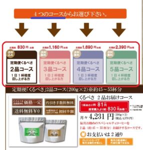 まずは、くるベさ定期便の種類とコース別の月々支払金額を確認しましょう。