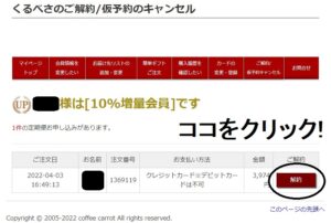 珈琲きゃろっとのくるベさの解約は、WEBのマイページから簡単にできます。