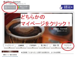 - まずは、ホームページにあるマイページをクリックします。