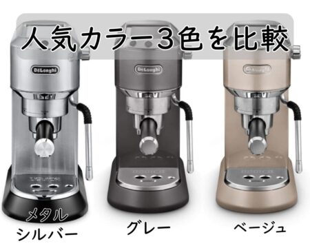 「エスプレッソマシン=銀色でゴツい」というイメージを持つ方も多いですが、デディカ アルテ(EC885J)は日本のキッチンに馴染みやすい3色が用意されているのが魅力です。