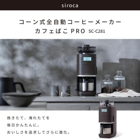 そんな人に向いているのが、シロカのコーン式全自動コーヒーメーカー カフェばこPRO SC-C281 です。