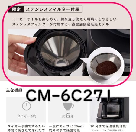 CM-6C271は、6杯まで淹れたい人に向けて、家族用としての実用性を強くしたモデルです。