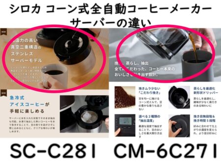 「シロカのカフェばこPROで迷っているけど、SC-C281とCM-6C271は何が違うの?