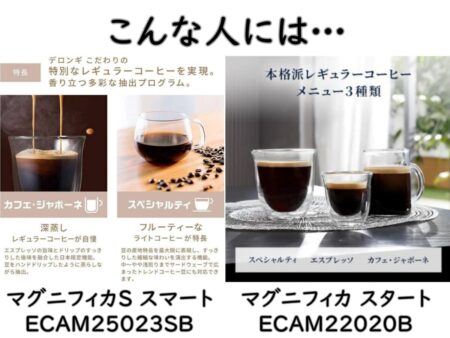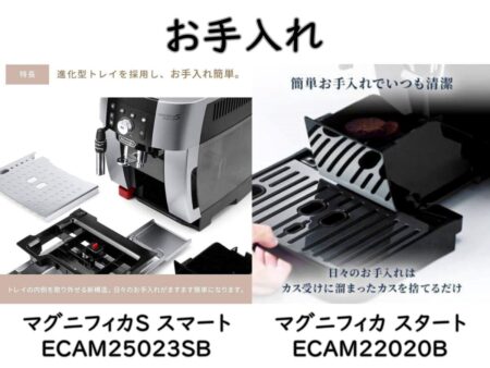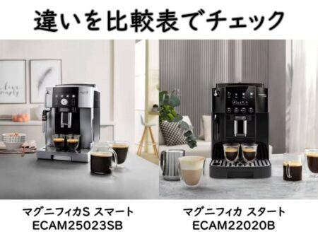 ※この記事の比較は、マグニフィカ スタート ECAM22020BマグニフィカS スマート ECAM25023SBを前提にしています。