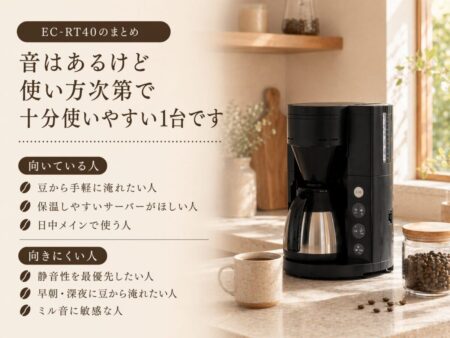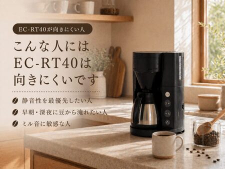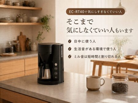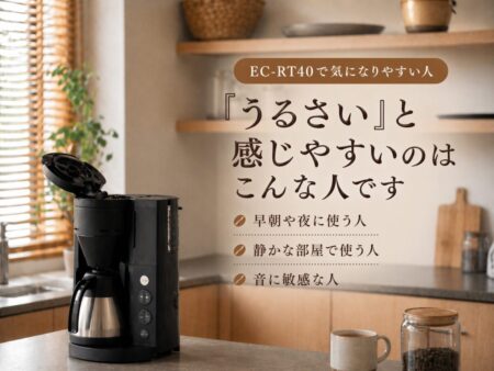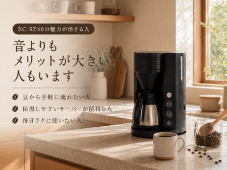 EC-RT40だけが特別うるさいというより、「豆を挽く便利さ」と引き換えに音は出ると考えるほうが正確です。
