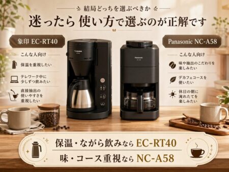 EC-RT40は、魔法瓶サーバー・直接抽出・メッシュ対応を活かして、毎日の使いやすさを重視する人向けです。