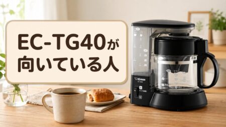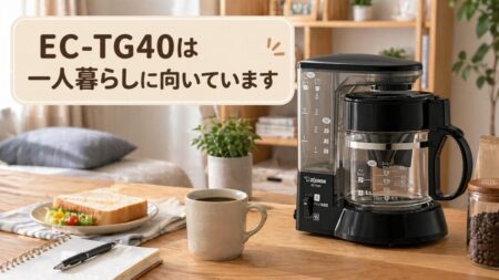 EC-TG40は、一人暮らしや少人数で「粉から手軽にコーヒーを淹れたい人」に向いたコーヒーメーカーです。