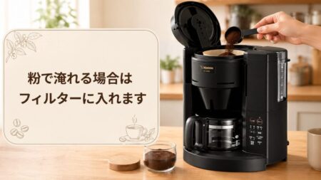 - 粉で淹れる:フィルターに粉を入れて「粉コース」