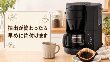 一方で、ガラス容器を使うため、抽出中に容器を外したり、保温板が汚れたまま使ったりしないように注意が必要です。