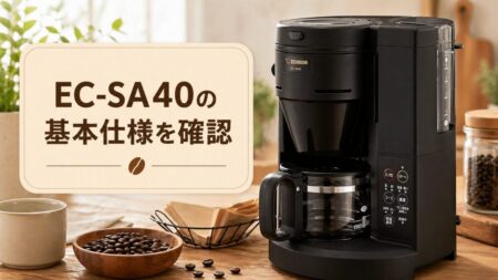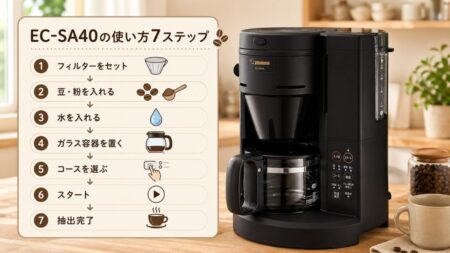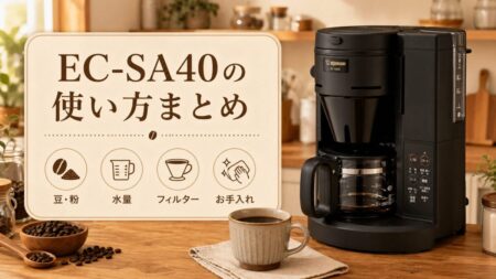この記事では、EC-SA40の基本的な使い方を、豆・粉の入れ方、水の入れ方、抽出設定、抽出後の片付けまで順番に解説します。