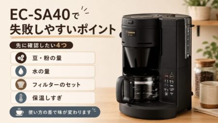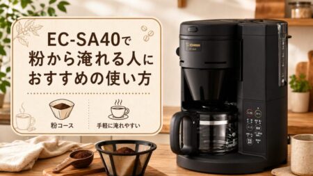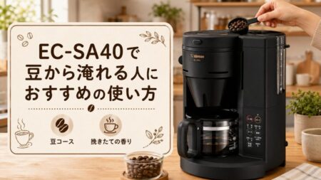 EC-SA40は、豆と粉の入れ場所、コース選択、フィルターの使い分けを押さえれば、日常的に使いやすい全自動コーヒーメーカーです。
