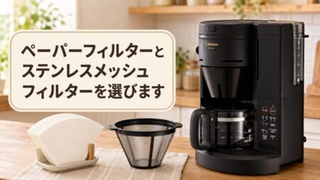 毎日の片付けを軽くしたいなら紙フィルター、コーヒーのコクやオイル感を楽しみたいならステンレスメッシュフィルター、と考えると選びやすいです。