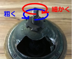 調節方法は簡単で、ミルの粗さ調節ナットを回すだけ。