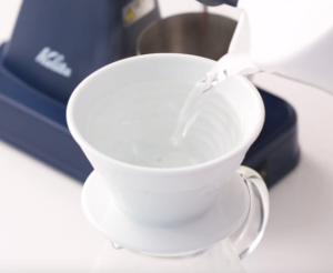 この時にペーパーフィルターに直接お湯がかかると、うまく抽出できなくなるので注意。
