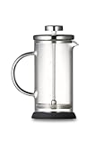 透き通った日本製の耐熱ガラスと見た目の相性は抜群で、コーヒーができあがるのを待つ4分間がゆったりと贅沢に過ごせる落ち着いたフレンチプレスです。