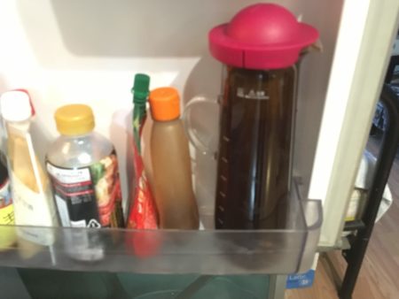 ドリンクポケットの部分は意外と調味料などですでにスペースが空いていない事が多いので横置きもできる水出しコーヒーポットは助かります。