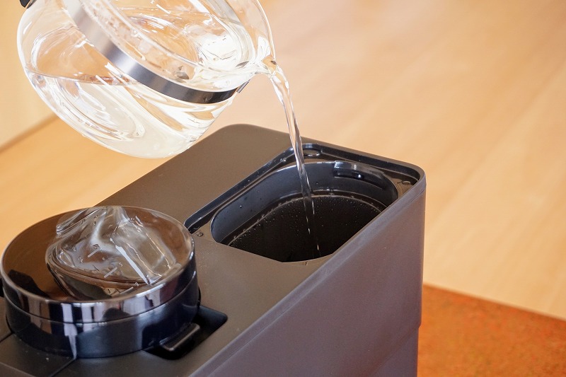 まずコーヒー3杯分の水を給水タンクに注ぎます。