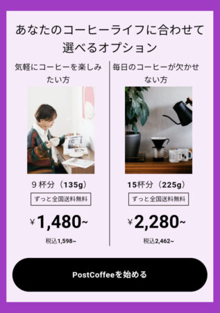 月額1,598円(税込)から送料無料でスペシャリティコーヒーが楽しめると話題のサブスクリプションサービスの「PostCoffee」。