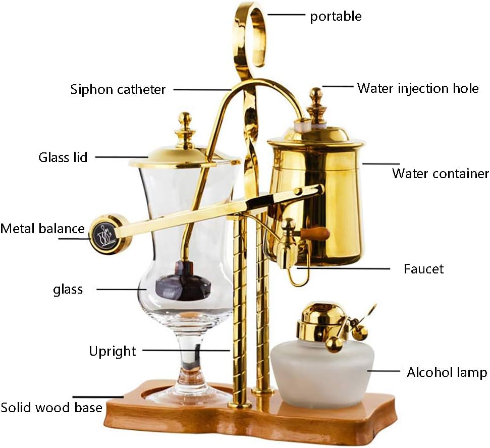 アルコールランプの火がゆらゆら揺れ、ポコポコとお湯が移動し、抽出が終わると天秤が傾いて火が消える――その一連の流れまで含めて楽しむ、ちょっと特別なコーヒー器具です。